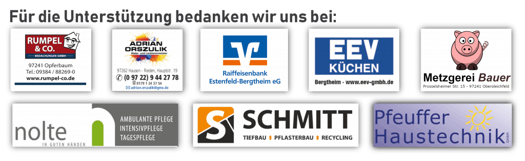 Raiffeisenbank Estenfeld und Bergtheim, Peks Getränke Werneck, sowie am Sa., 20.09.2025 um 15:30 Uhr am Sportgelände Bergtheim