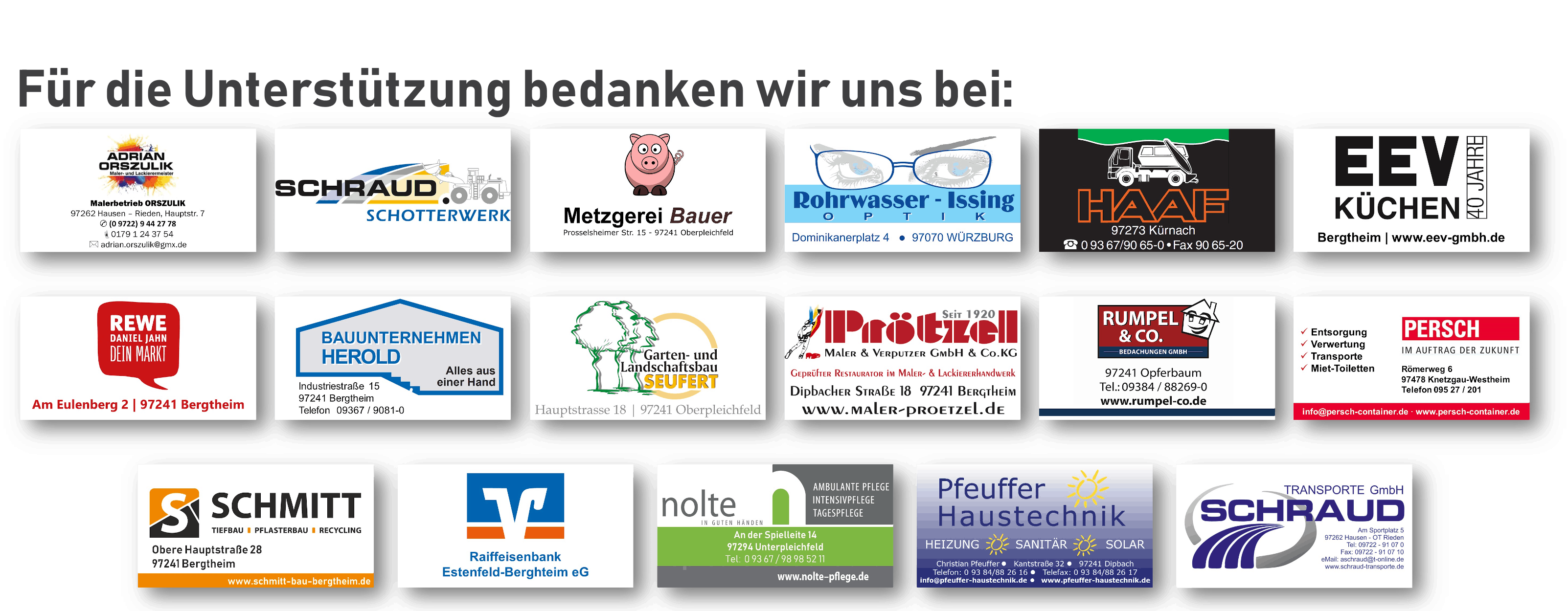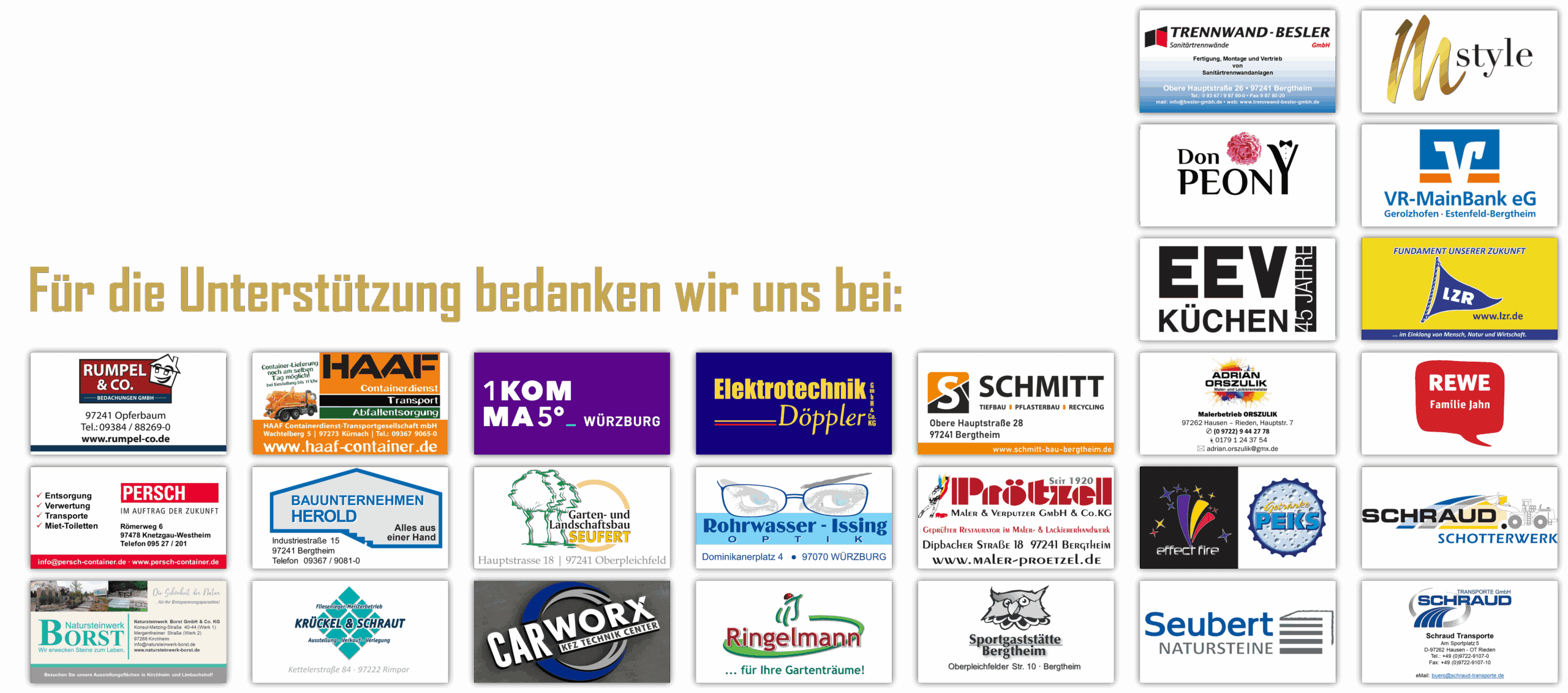 Raiffeisenbank Estenfeld und Bergtheim, Peks Getränke Werneck, sowie am Sa., 20.09.2025 um 15:30 Uhr am Sportgelände Bergtheim